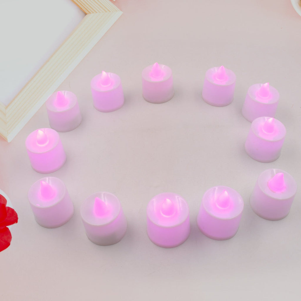 6632A Pink Flameless LED Tealights, Smokeless Plastic Decorative Candles - LED Tea Light Candle For Home Decoration, Diwali Item (Pack Of 12pc) (Diya, Divo, Diva, Deepak, Jyoti)