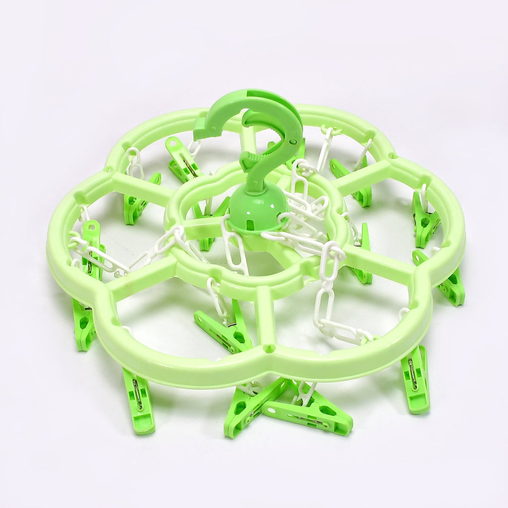 Plastic Round Cloth Drying Hanging Hanger with  Clips/pegs, Baby Clothes Hanger Material – Plastic Make & Design – Designed with a convenient 360° rotatable neck and smooth swivel hook with Clips Usage - suitable to hang drying the socks, bras, cloth diapers, towel, underwear, scarf, panties, gloves, handkerchiefs, baby clothes or other small delicate items Suitable for indoor and outdoor, Portable from one place to another Great space saving hanging clip hanger
